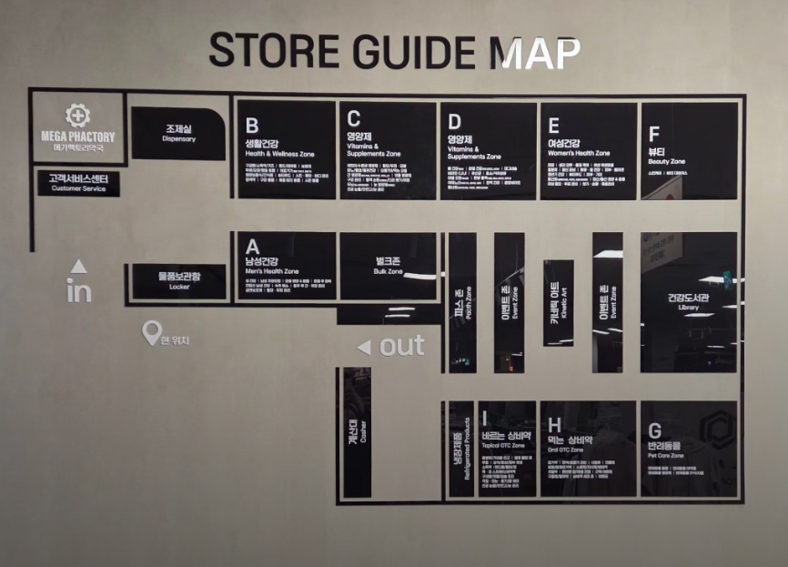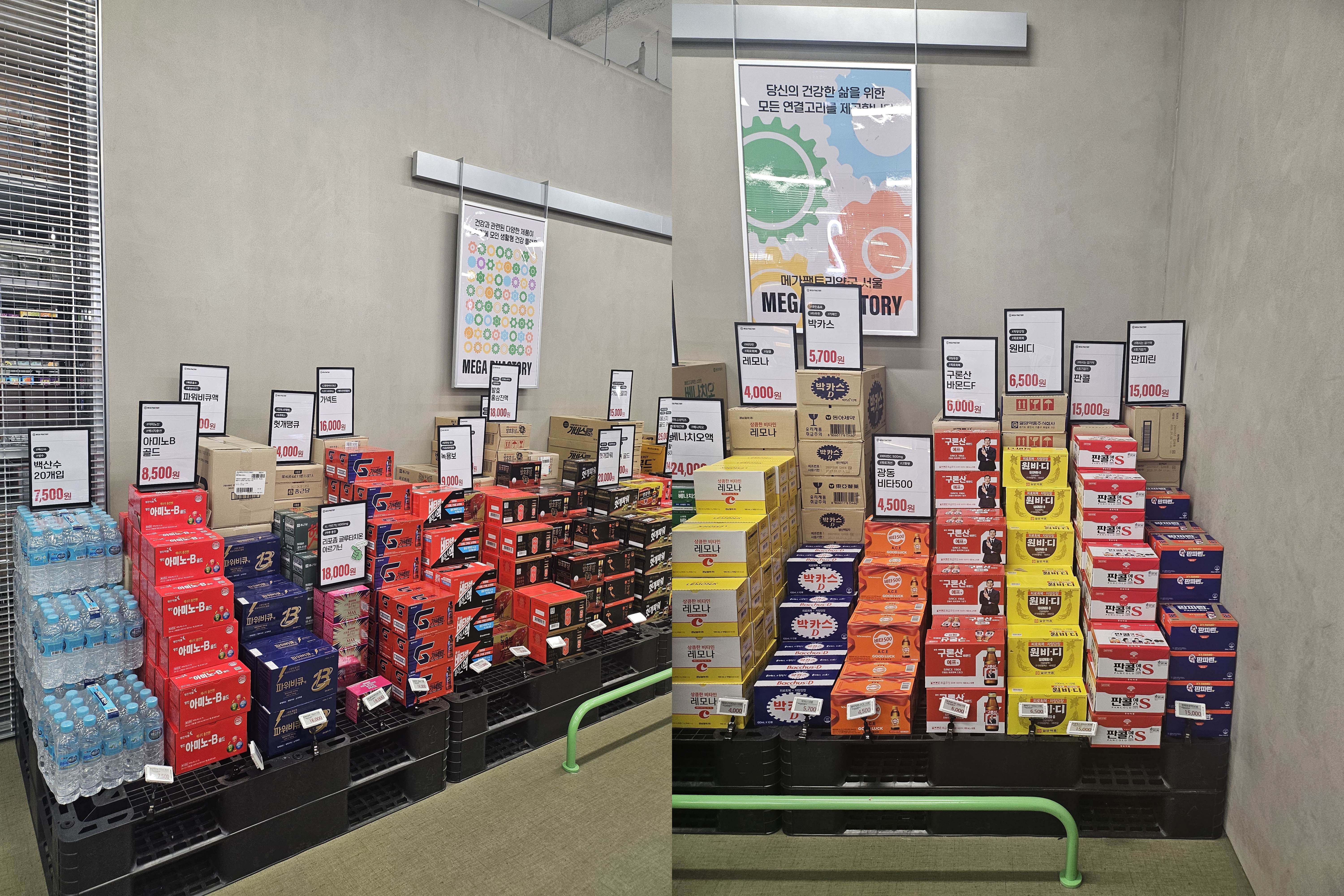메가팩토리 창고형 대형 약국에 대한 개인적인 총평은 우선 수천 종류의 의약품과 건강기능식품을 한 공간에서 직접 비교 선택할 수 있고 동네 약국에 비해 영양제와 건강보조식품등은 이벤트 상품을 대량 구매 시 훨씬 저렴합니다.
