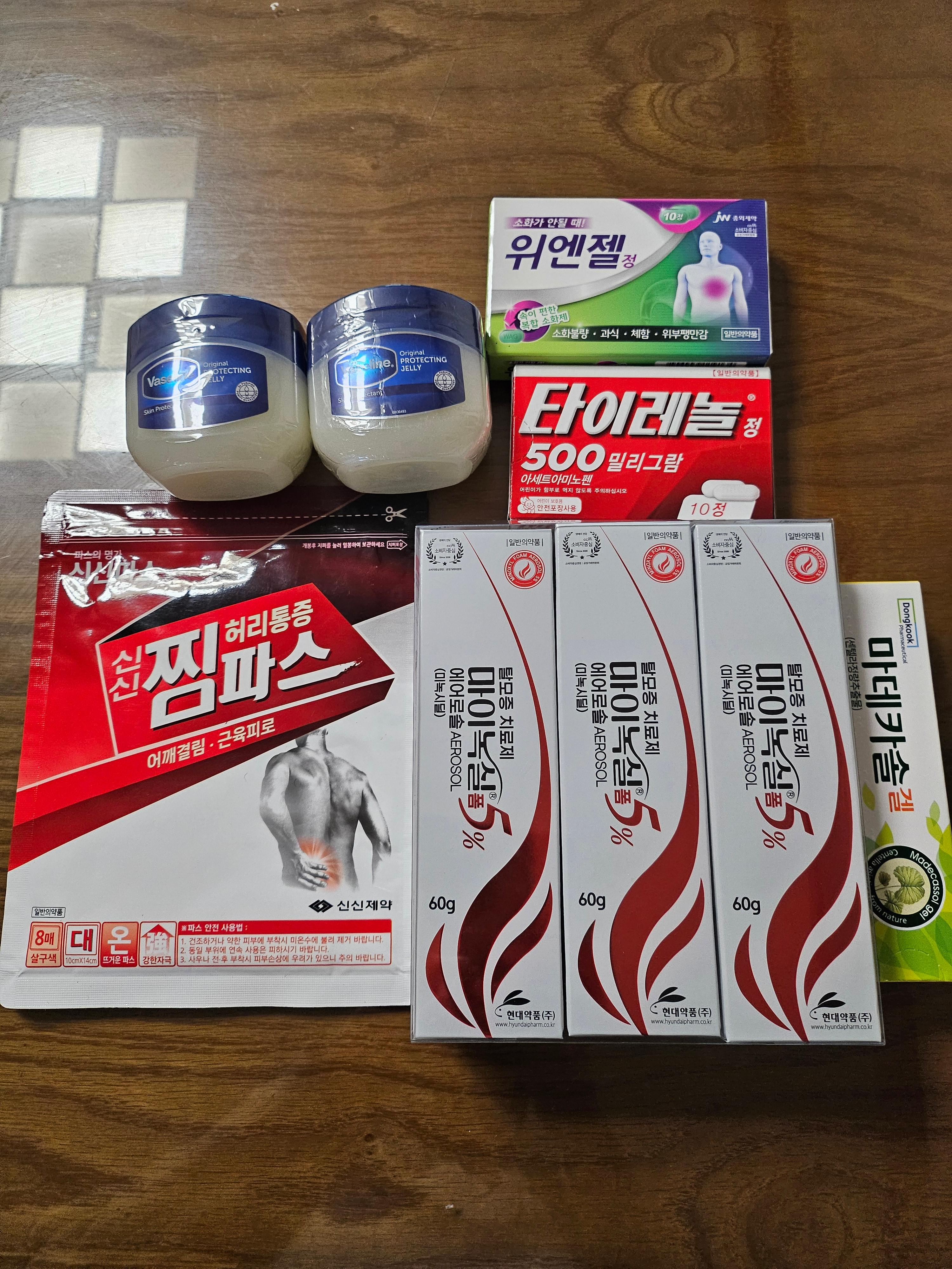 타이레놀 500mg 2,500원, 파스 2,500원, 바세린은 다이소 보다 200~300원 저렴, 소화제 1,500원 나름 성공적인 쇼핑이었습니다.