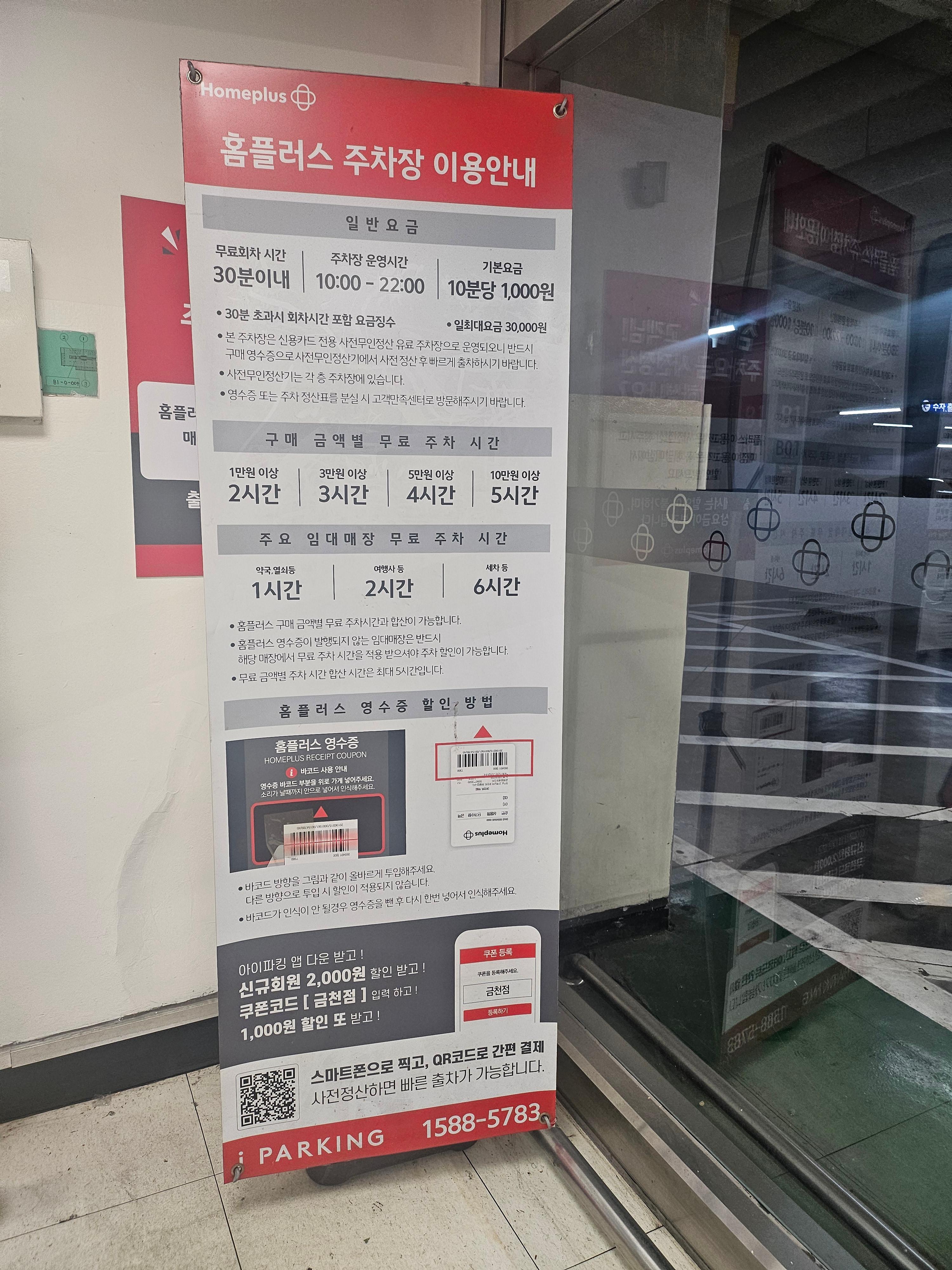 주차는 홈플러스에 하면 되는데 구매 금액 대비 주차시간이 길어 주말에 가족 나들이 하기 좋은 것 같아요.